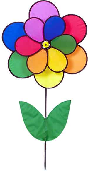 Why wait for spring to add color to your outdoor spaces when this double layer wind wheel flower will add color and charm to your outdoor setting! The nylon flower will hold its color for a long time, while the stem is made of fiberglass rod. With an overall heighth of 45" it will be head and shoulders above the rest of your blooming "plants"